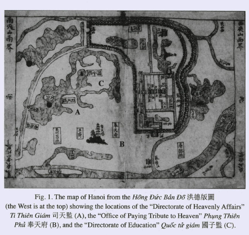 Điều vẫn chưa rơ rằng liệu “Ti Thiên Giám” nguyên thủy hồi đầu thế kỷ thứ 11 có phải đă được xây dựng tại địa điểm được thể hiện trên bản đồ hay không. Rất nhiều phần nó đă bị đóng cửa trong thời gian chiếm đóng của Trung Hoa (1407-1427), bởi nếu không, nó sẽ thách đố quyền hạn chuyên độc của các nhà chiêm tinh chính thức của Trung Hoa trong việc thực hiện và giải thích các sự nhận xét về thiên văn học. Người ta có thể ức đoán rằng định chế này đă được mở cửa lại không lâu sau sự triệt thoái của quân đội Trung Hoa, và đă duy tŕ hoạt động trong suốt thế kỷ thứ 17, khi một bản sao lục tŕnh bày nơi H́nh 1 được in ra.