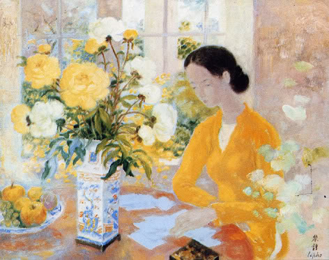 Trước khi gặp Lê Phổ tôi yêu thích hai màu vàng trong hội họa Tây phương. Màu vàng của Van Gogh và màu vàng của Vermeer trên mặt tường thành phố Delft. Màu vàng của Van Gogh là màu của trí năo khổ đau bị ánh lửa những v́ sao chổi đốt cháy. Màu vàng Vermeer là màu tằm vừa ươm nơi vùng hàn đới đợi hè.
